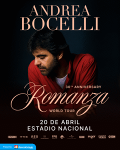 Este concierto “Romanza World Tour 2026” promete ser una noche inolvidable de música clásica y emotiva, con la gran figura de la música italiana interpretando sus más grandes éxitos, como «Con te partirò», «Vivo per lei» y «The Prayer», entre muchos otros éxitos que han catapultado al músico como uno de los más grandes referentes de la música docta fusionada con composiciones populares que han sabido llegar al gusto del público en todo el mundo.